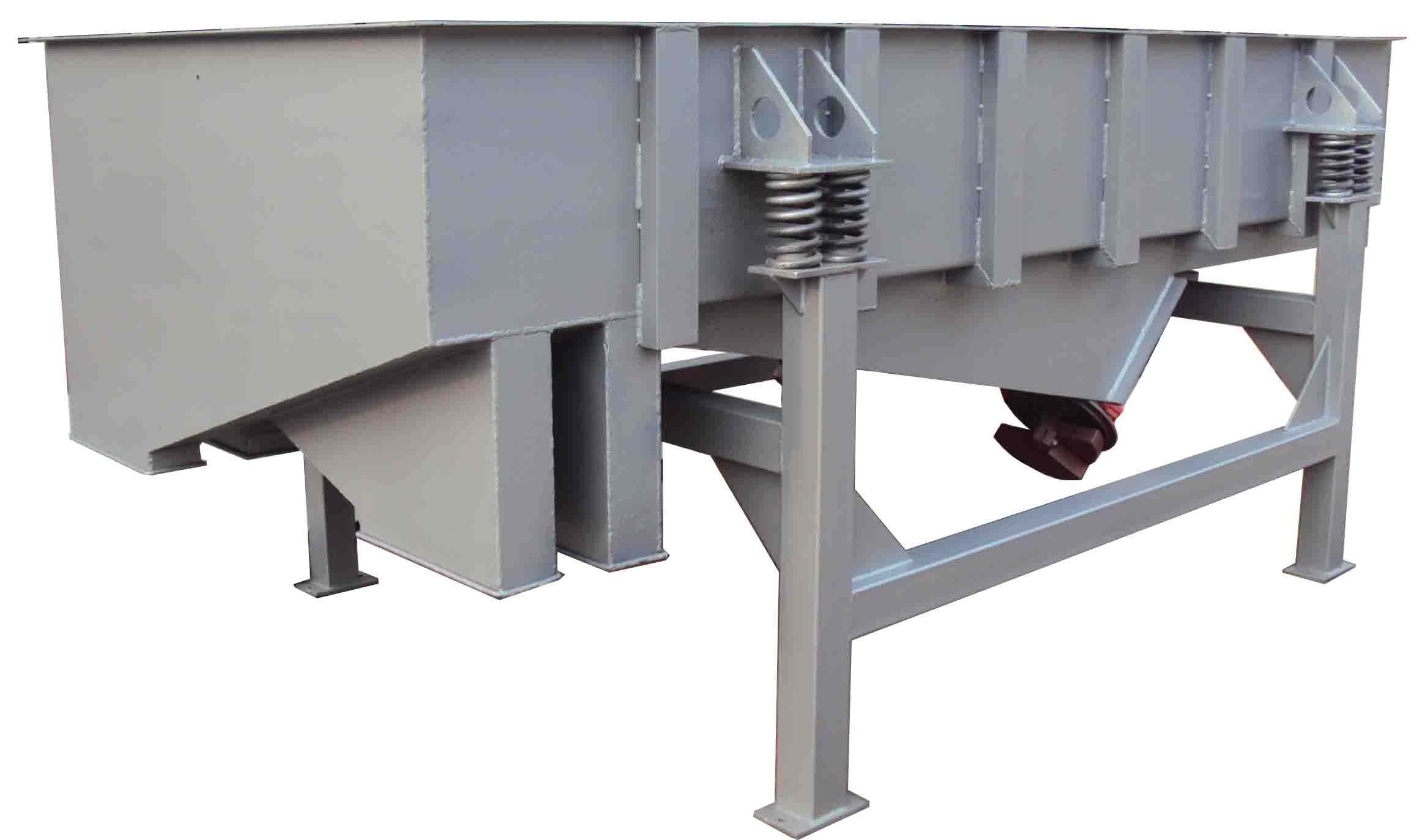 本筛机为双振动电机驱动,当两台电机作同步反向旋转时,其偏心块所产生的振动力在平行电机轴线的方向相抵消,在垂直电机轴的方向叠为一合力,因此筛机的运动轨迹为一直线。两机轴相对筛面在垂直方向有一倾角,在振动力和物料自重力的联合作用下,筛面上的物料做连续的跳跃式运动。在与筛面相遇的过程中,是小于筛孔的物料透过筛网,从而达到对物料进行筛选和分级的目的。