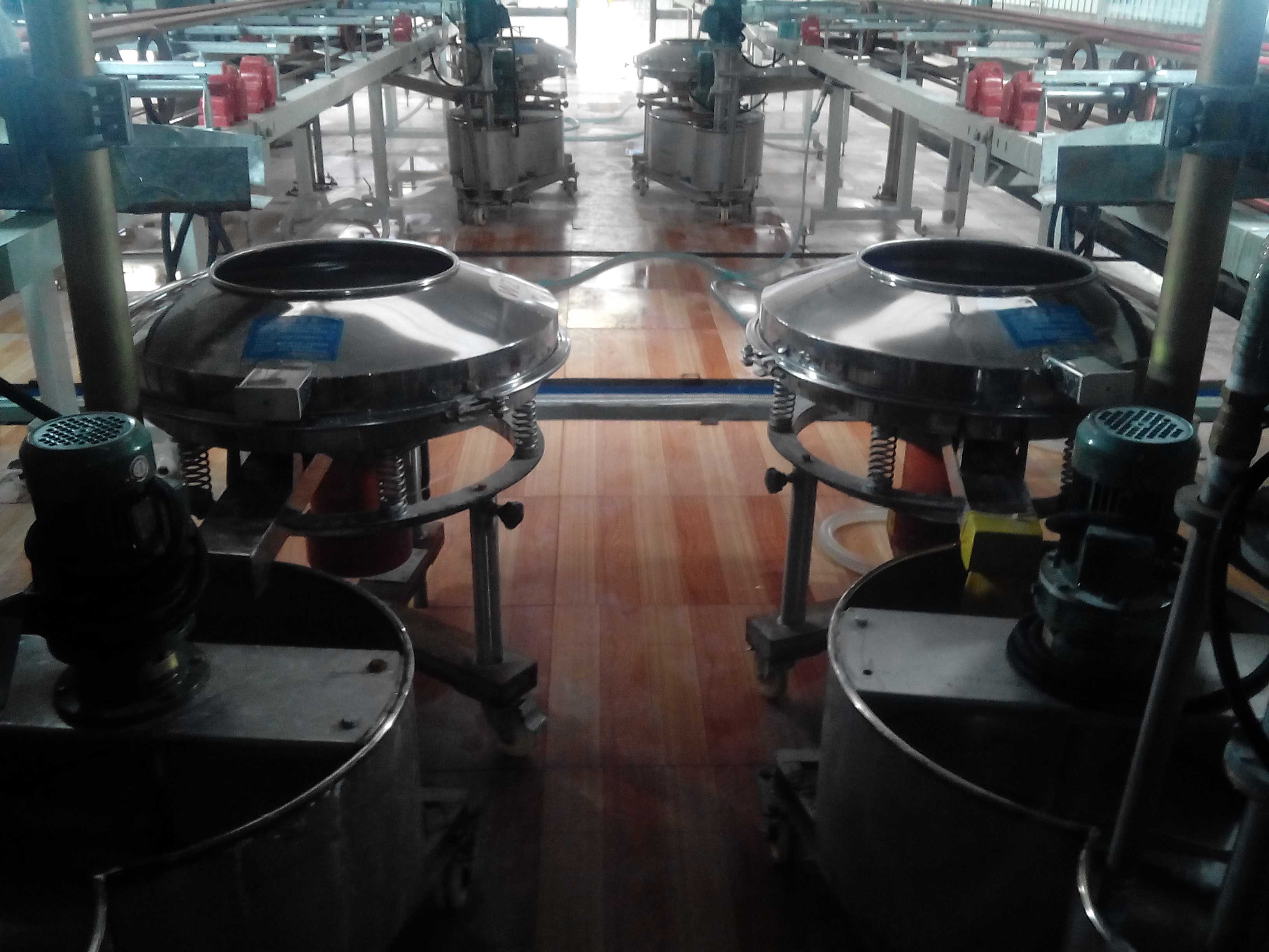 陶瓷釉料的过滤是采用我公司的高频振动筛,根据陶瓷釉料的特性及过滤目的,我公司专门针对粘稠性较强的浆液物料的过滤除杂而设计的过滤筛分设备,高频率的振动将浆液打散成分离状的液体分子,更易于分离出其中的细小杂质。高频振动筛在过滤陶瓷釉料的过程中,采用140目筛网,使用直径800设备时每个小时的处理量在650公斤左右;目前陶瓷釉料最高采用325目筛网过滤。