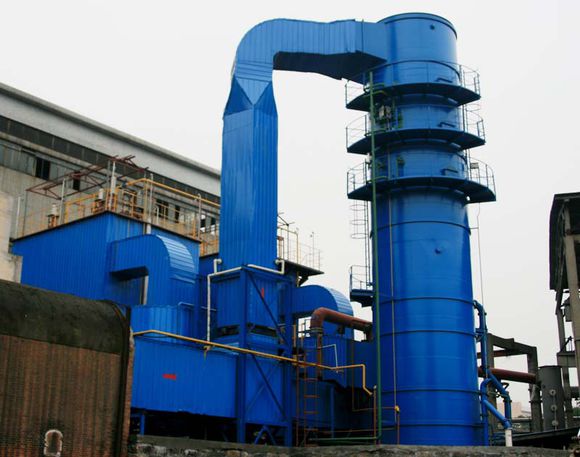 脱硫是控制二氧化硫排放的技术,除尘器不仅能脱除烟气中的二氧化硫,并能生产出高附加值的硫酸氨化肥产品。该锅炉除尘设备利用一定浓度(此处以28%为例)的氨水作为脱硫剂,生成的硫酸氨浆液,输送到化肥厂处理系统。脱硫过程中使用的氨水需要量,由预设PH控制阀来自动调节,并由流量计进行测定。硫酸氨结晶体在脱硫除尘器中被饱和的硫酸氨浆液结晶出来,生成35%重量比左右的悬浮粒子。这些浆液被子泵送到处理场,经过初级和二级脱水,然后,再送到化肥厂进行进一步脱水、干燥、冷凝和存储,通过锅炉除尘设备对烟气脱硫的同时,锅炉除尘器还生成了可观的副产品,达到一定的经济效益。